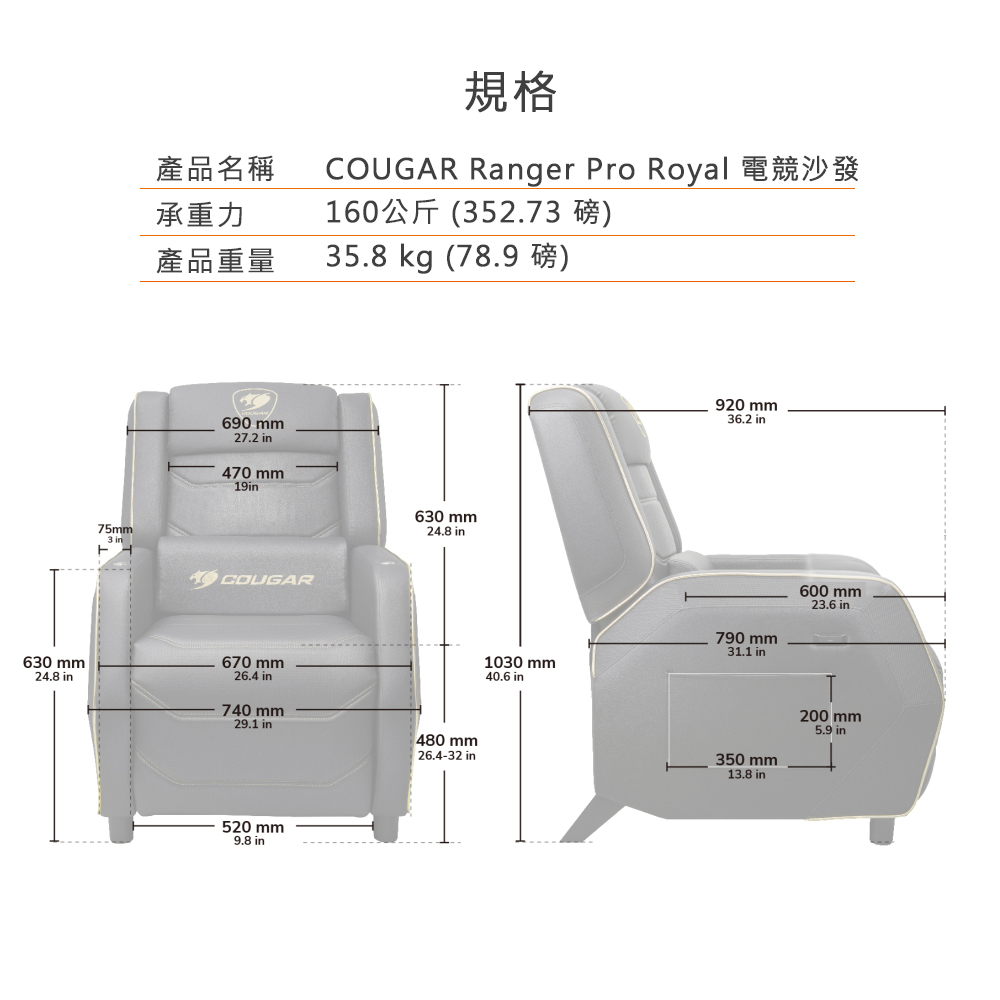 【COUGAR 美洲獅】RANGER ELITE 電競沙發椅